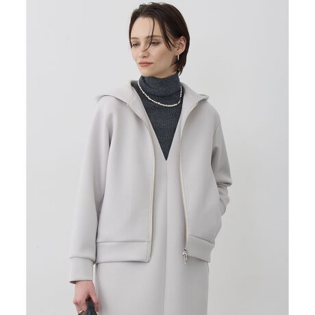 ■デザインふくらみとハリ感が特徴のダンボール素材のジップアップフーディです。着やすい着丈や程よい肉感でこれからの時期コートINやジャケットIN、室内での気温調整にも活躍します。また、逆開ファスナーを使用しておりますので、下側を少し開けて着ていただくのもおすすめです。また見返し端の配色を効かせたトリミングもさり気ないポイントです。