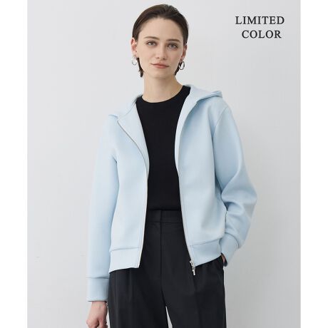 ■デザインふくらみとハリ感が特徴のダンボール素材のジップアップフーディです。着やすい着丈や程よい肉感でこれからの時期コートINやジャケットIN、室内での気温調整にも活躍します。また、逆開ファスナーを使用しておりますので、下側を少し開けて着ていただくのもおすすめです。また見返し端の配色を効かせたトリミングもさり気ないポイントです。
