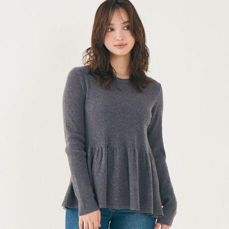 華やかにスタイルアップ。ペプラムギャザーニットトップス