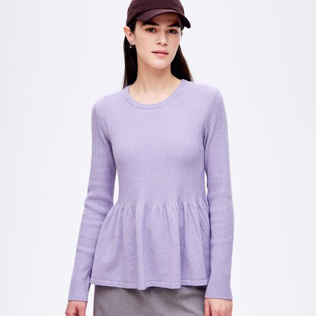 華やかにスタイルアップ。ペプラムギャザーニットトップス