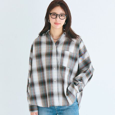 ゆったりとしたドルマンスリーブが、体のラインをさりげなくカバーしてくれるチェックシャツ。