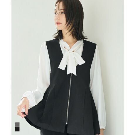 ウエスト部分に施したタックから広がるペプラムシルエットが、立体感と女性らしさを演出。