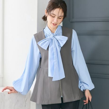 ブラウスやカットソーの上に重ねるだけで、きれいめなスタイリングに。