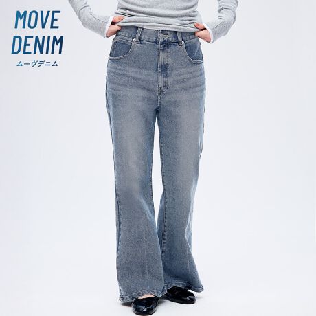 美脚見えを叶える、女性らしいムーヴデニムフレアパンツ