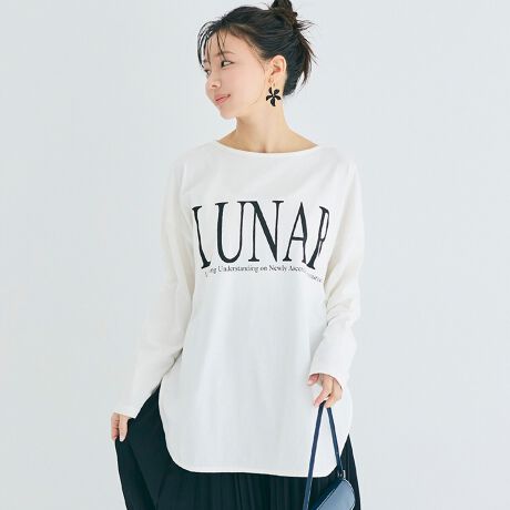 ボートネックで女性らしさを引き立てるロゴロングTシャツ
