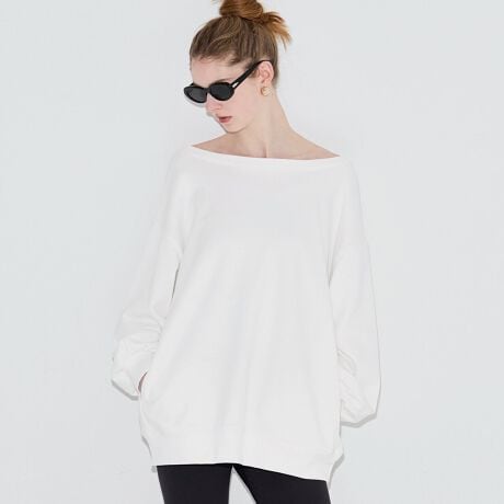 抜け感のあるワンショルダーデザインが着映えするビッグスウェット