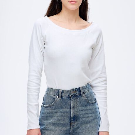 女性らしい抜け感を演出、ラグランオフショルダーロングTシャツ