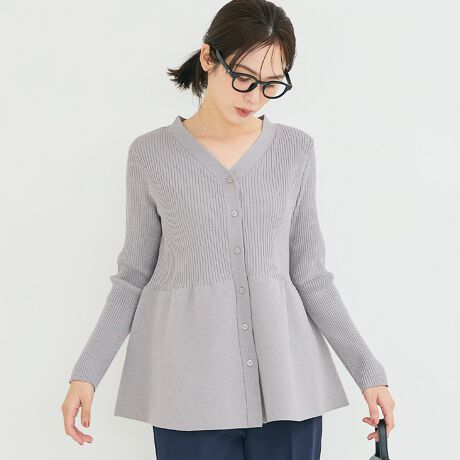 体型カバーと女性らしさを両立する、ウォッシャブルペプラムニットチュニックカーディガン