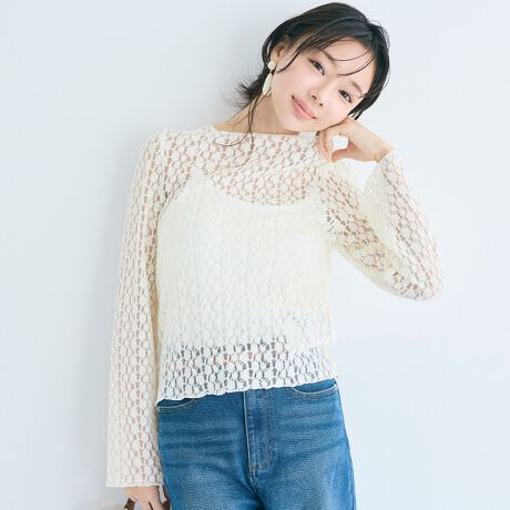 総花柄レースをあしらった、インナーとしても一枚着としても着映えするトップス。