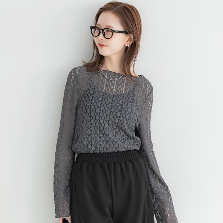 総花柄レースをあしらった、インナーとしても一枚着としても着映えするトップス。