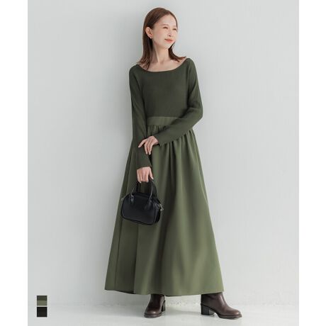 異素材ドッキングの切り替えで、スタイルアップを叶えるニットワンピース