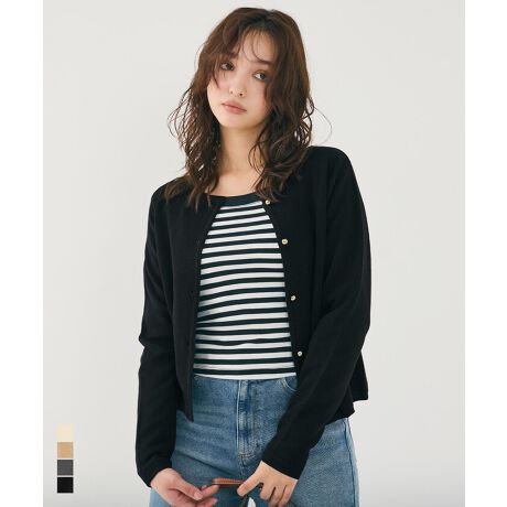 フロントの金ボタンが華やかさをプラスし、きれいめにもカジュアルにもマッチします。