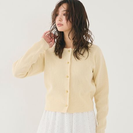 ボタンを留めてプルオーバー風に、開けてカーディガンとしても◎