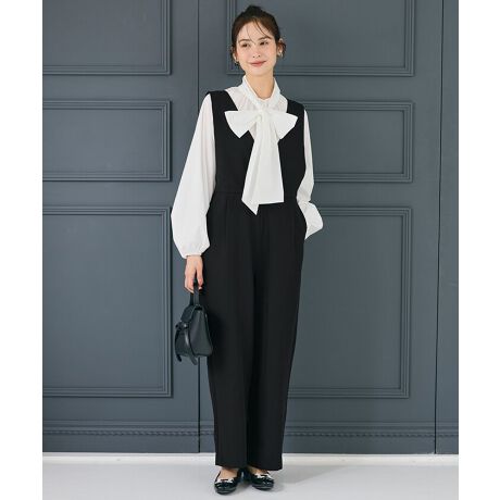 深めVネックがすっきりとした印象を与える、大人のオールインワン