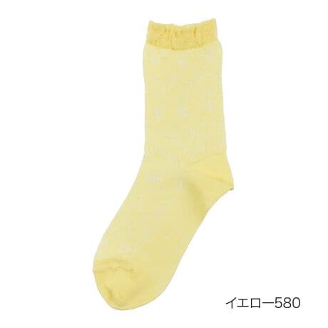 ミモザの日(国際女性デー)を意識したペールトーンのイエローがポイントのレース調の履き口やわらかソックス。ハイゲージかつ裏糸のブライトヤーンを使用することで、程よい透け感とレース感がエレガントです。