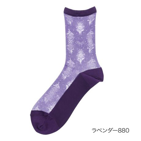 ノスタルジックなボタニカル柄をシースルーで表現。ハイゲージですっきりとした一足でローファーなどマニッシュなシューズとの相性も良いです。