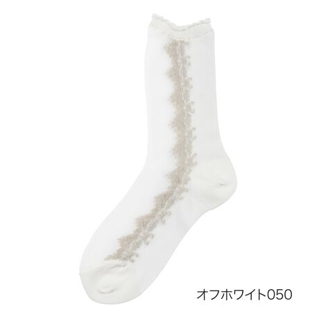 ●特徴:・クルー丈・レース柄・テグス シアー素材