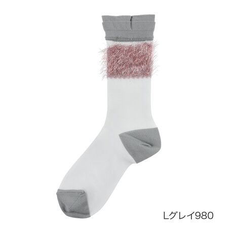 繊細で透け感があるベースを採用。上部にフサフサのフラッフィーな切替がインパクトのある一足。ブーツから覗かせても楽しいデザインです。