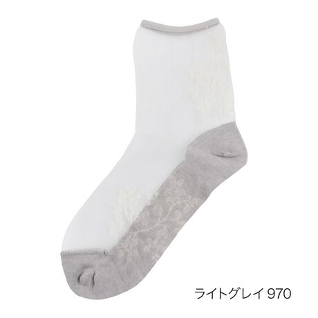 繊細なテグスにボタニカルなデザインが映えるシアーソックスです。涼しげで春夏のコーデに抜け感を出してくれるナチュラルなデザインの一足です。