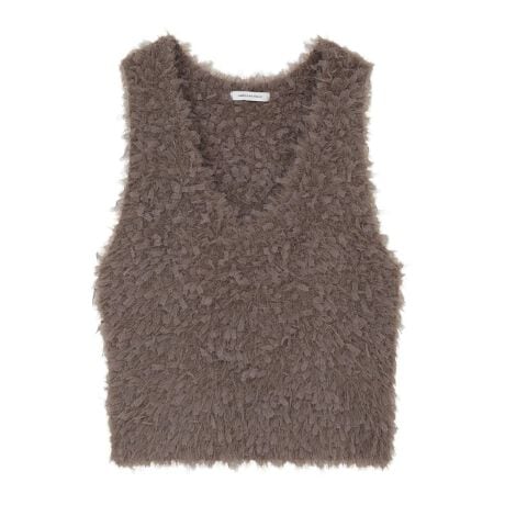 ふわふわとしたエアリーな素材感が女性らしいテープヤーンニットベスト。コンパクトなサイズながら伸縮性に優れ、快適な着心地が魅力です。深めVネックが顔まわりをすっきりと演出し、インナーやアクセサリーとのレイヤードで個性を出すのもおすすめ。いつもの着こなしに加えるだけで奥行きのあるコーディネートが完成するおすすめのアイテムです。透け感[なし]