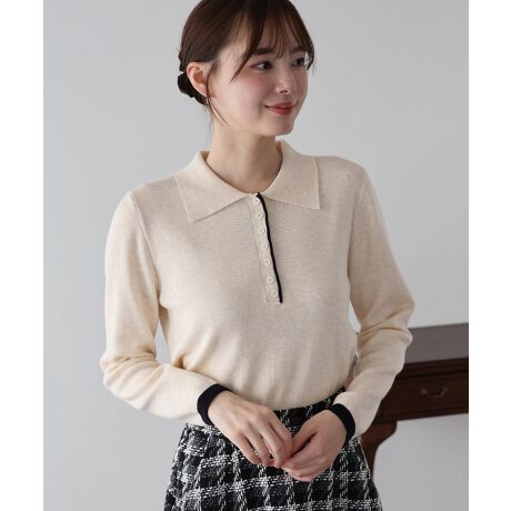 カジュアルになりがちなポロシャツデザインを、柔らかなニット素材で女性らしく、大人かわいい一着に仕上げました。