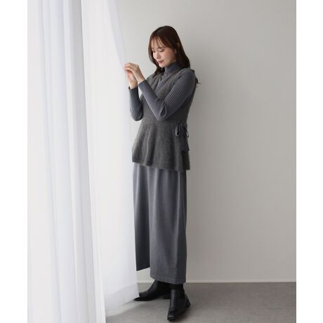 シャギーペプラムベストとワンピースがセットになったリブニットワンピース。