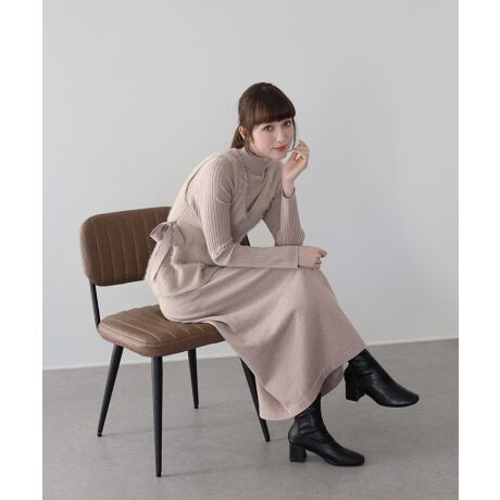シャギーニットベスト&ワンピースのレイヤードセット