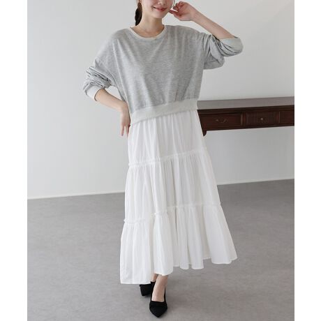 ふんわりとしたティアードスカートをドッキングしたトレンド感のあるワンピース。