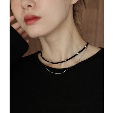 洗練された雰囲気のコード×チェーンデザイン二連ネックレス