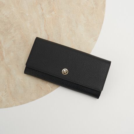 フラップ中央の丸プレートが上品に輝き、手元に大人らしい気品を添えます。