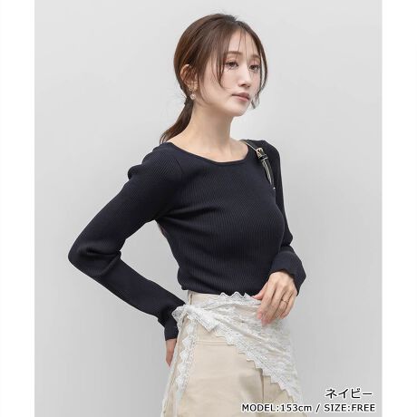 ・前後深めのラウンドネックですっきりとしたデコルテを演出