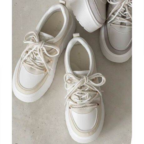 <26春夏新作>【22.5-25.5】ダブルシューレースボリュームソールスニーカー
