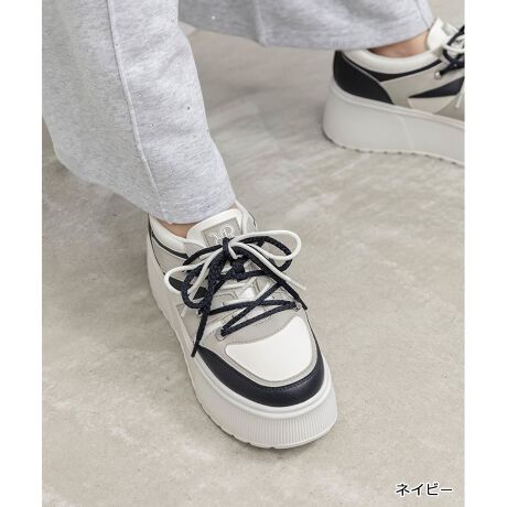 二重に結んだリボンがキャッチーなボリュームソールスニーカー。