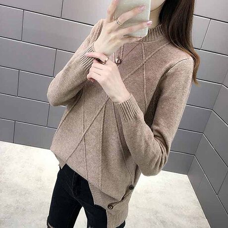 [型番:21868]プチハイネックニット定番カラーから差し色までうれしい5色展開お好みのスタイリングに合わせてお選びいただけます裾の飾りボタンがアクセントにチュニック丈のため、デニムにもスカートにも、インしてもコーデがきまります●detail透け感:無し伸縮性:あり