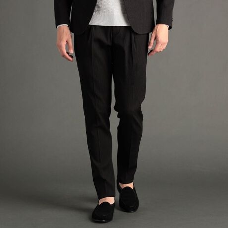 ワンプリーツテーパードスラックスにドローコード、サイドジプポケットデザインを加え、サマーフォーマルをクラシカルに昇華させたHigh-endなセットアップ使用も可能なパンツ。
