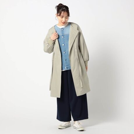 ウエスト絞り ノーカラーコート