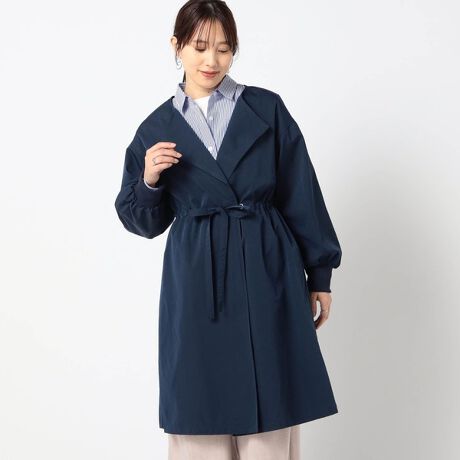 ウエスト絞り ノーカラーコート