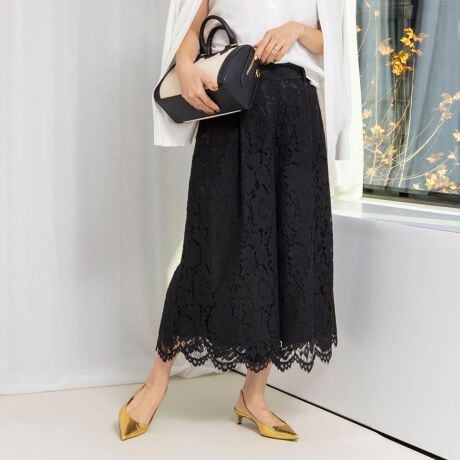 ・総レースのクロップドワイドパンツ
