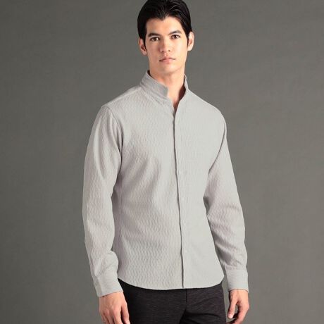 ミニマルなシャツカラーとスタンドカラーに着こなせる2WAYデザインを採用。