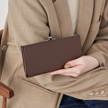 無駄を削ぎ落とした仕様と、がま口ならではの安心感を備えた、すっきりと持てる長財布。