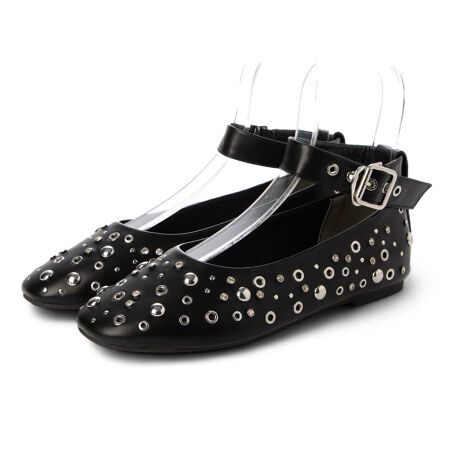 ランダムに散りばめられたスタッズやハトメが視線を惹きつける主役級フラットパンプス!アンクルストラップは取り外し可能で、気分やスタイリングに合わせてアレンジが楽しめます。ストラップは5つ穴があり、お好みのホールド感にサイズ調節出来るのも嬉しいポイント◎履くだけでコーディネートを格上げしてくれるEVOLらしいエッジを効かせた1足です!