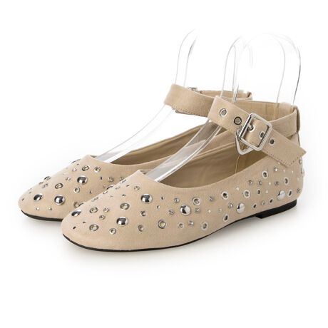 【26春夏新作】 【クッション入り】2WAYスタッズアンクルストラップフラットパンプス JA4000