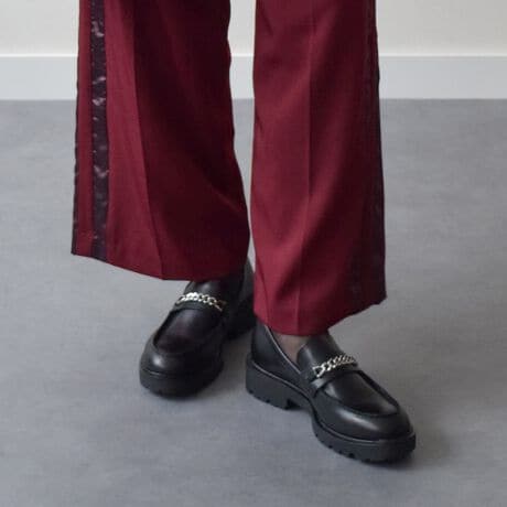 細めのチェーンディテールが大人っぽい印象。スタイルを選ばないシンプルなデザインで履きまわしの効く一足です。
