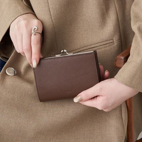 シルバーカラーのがま口金具が、全体を引き締めながら上品な印象を添えています。