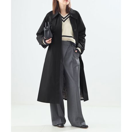 シンプルなステンカラーコートに、ガンフラップをプラス。また、釦はあえてメンズ仕様にすることで、オーセンティックな雰囲気に引き締めたのもL'ESSAGEらしくこだわったポイントです。