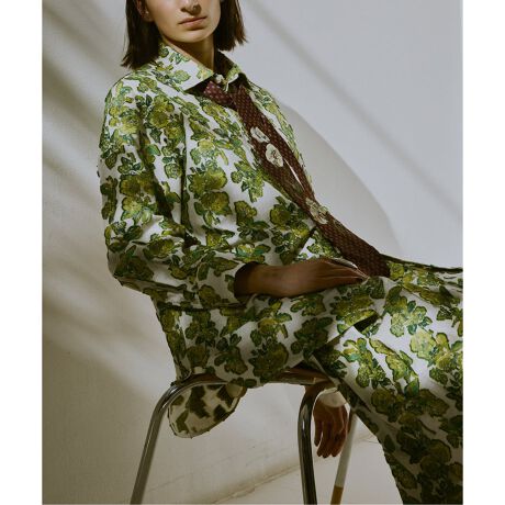 TOLIGHTデザイナー青山氏のドローイングをジャガードで表現した素材でおつくりしたシャツ。