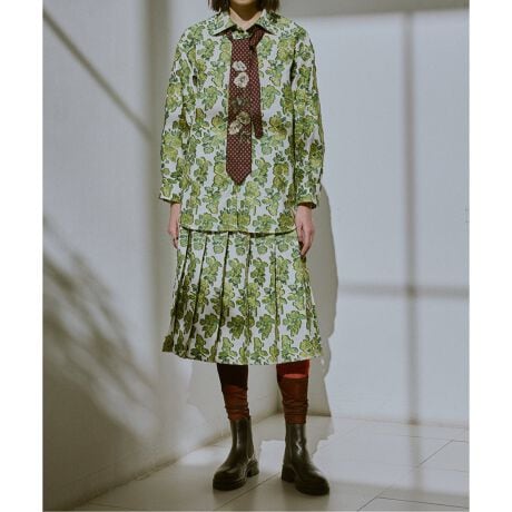 TOLIGHTデザイナー青山氏のドローイングをジャガードで表現した素材でおつくりしたプリーツスカート。