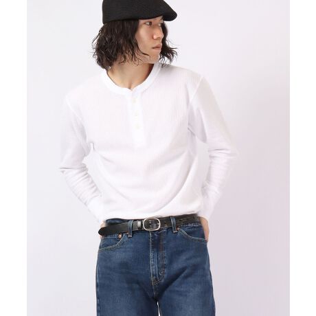 アメカジの王道アイテムとして人気のヘンリーネックは、レイヤードで襟元のアクセントにおすすめ