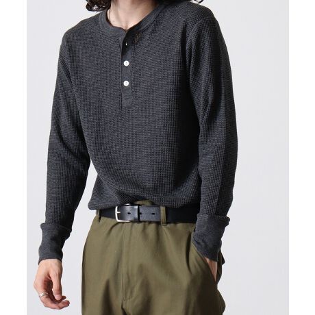 アメカジの王道アイテムとして人気のヘンリーネックは、レイヤードで襟元のアクセントにおすすめ