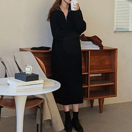 -ハーフジップがカジュアルおしゃれなニットロングワンピースです。